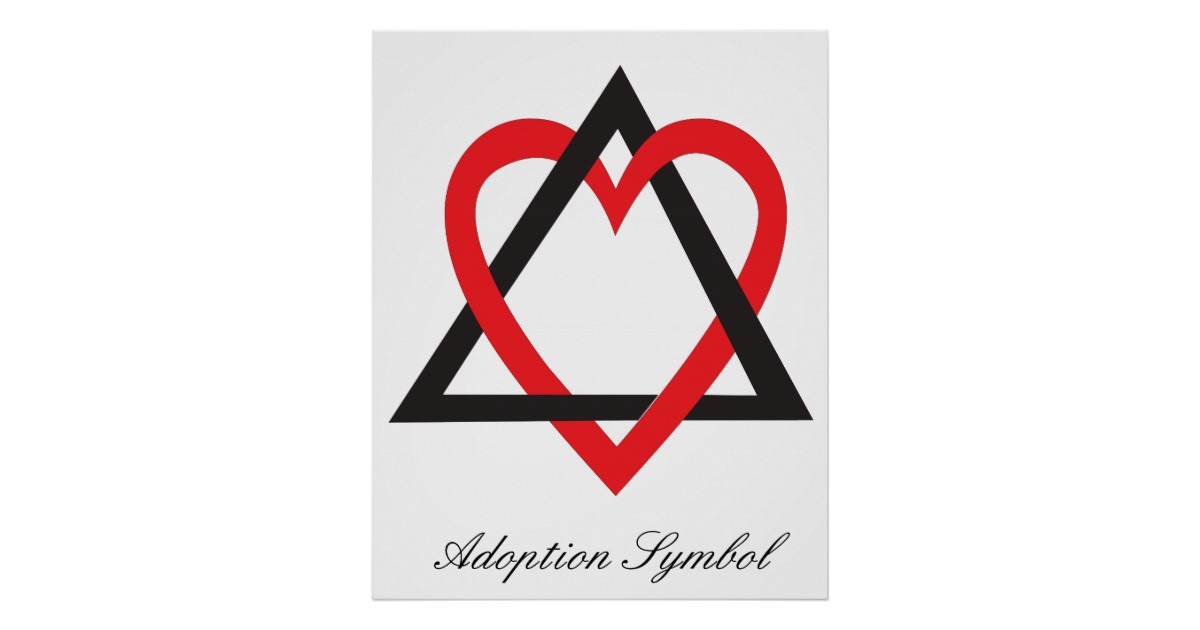 This picture hangs in our home. It is truly an inspiration to me. The triangle shows the sides to adoption. The three sides of the triangle represent the child, the birth parents and the adoptive parents. The heart shows they are all connected by love. This speaks volumes to me! I love that we all love the child. It is a constant reminder to me that by the grace of God, I have the privilege to love a child that was birthed by another woman. I am reminded daily that another woman thinks of my child on his/her birthday, on holidays and on various days of the year. It helps me be mindful of my child and his/her feelings. This symbol is a constant reminder to me of my blessed life.